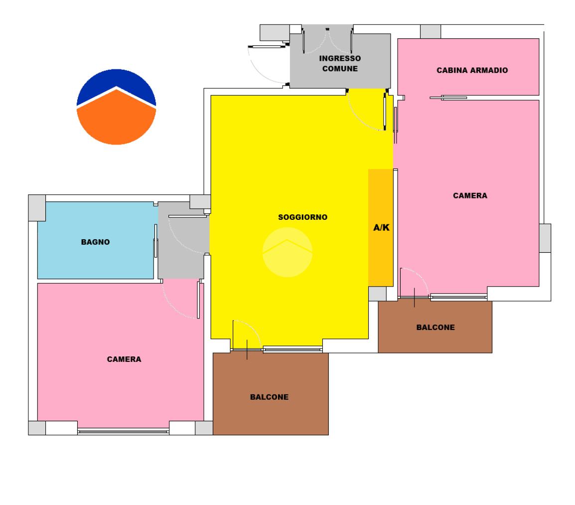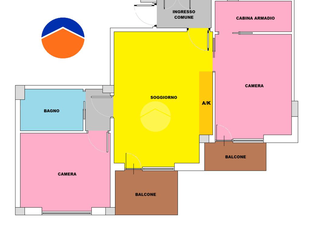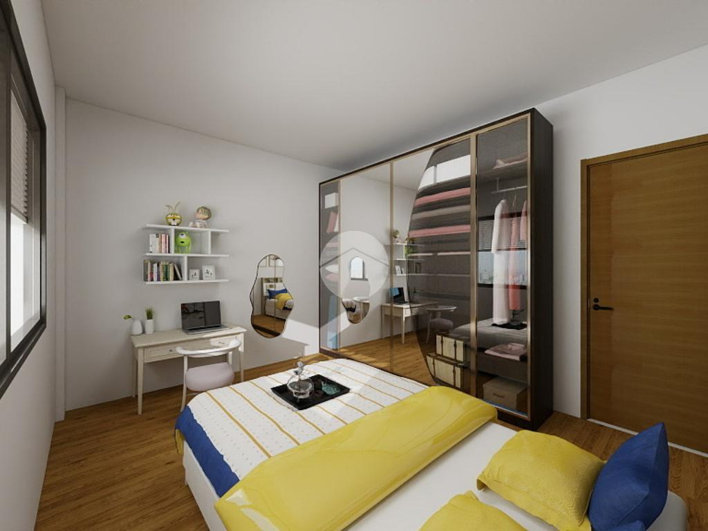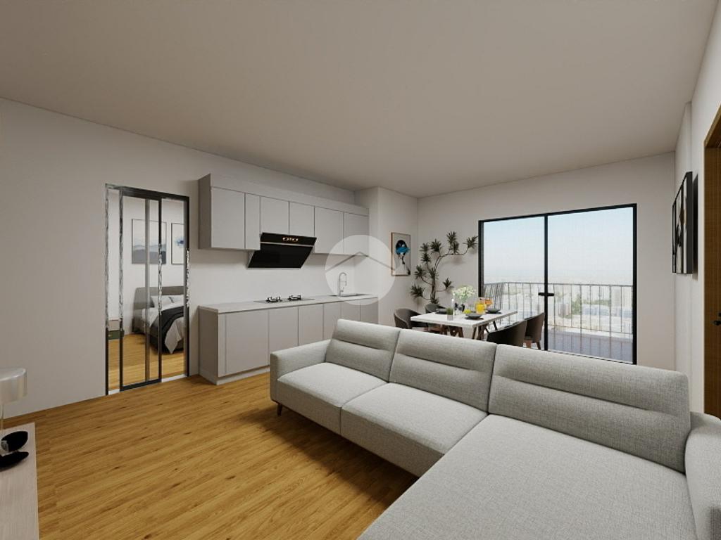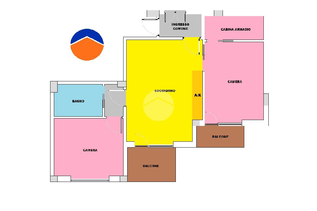 Composizione interna: Ingresso diretto su zona giorno con cucina a vista (predisposizione per piano a induzione), Due camere da letto, Un bagno cieco e Due balconi con esposizione completamente a sud e vista aperta, nonostante si trovi al primo piano