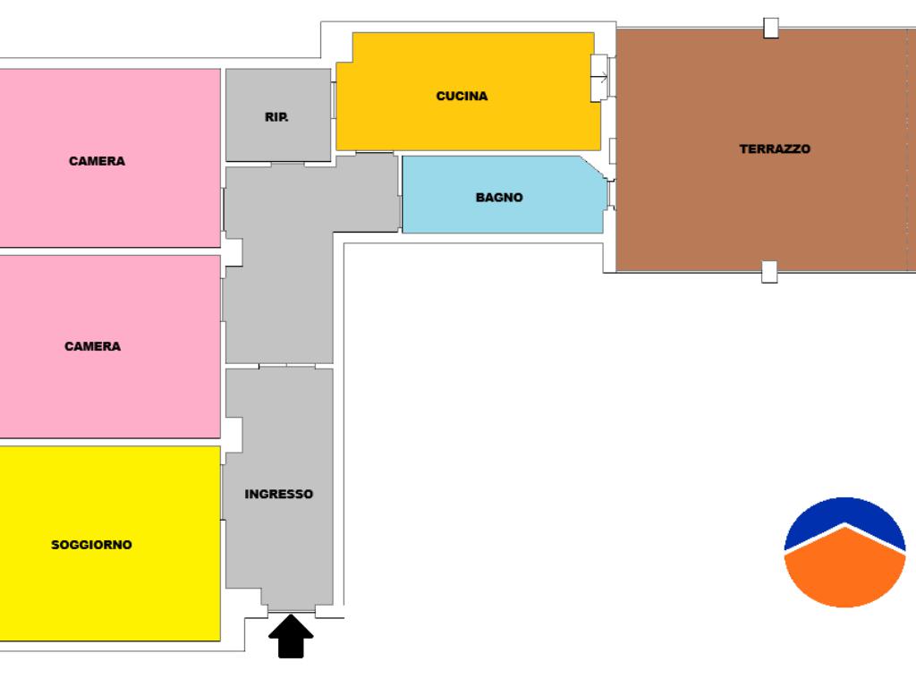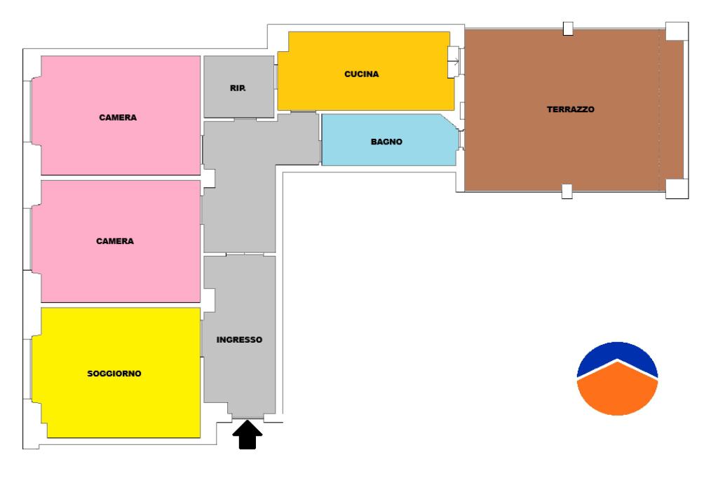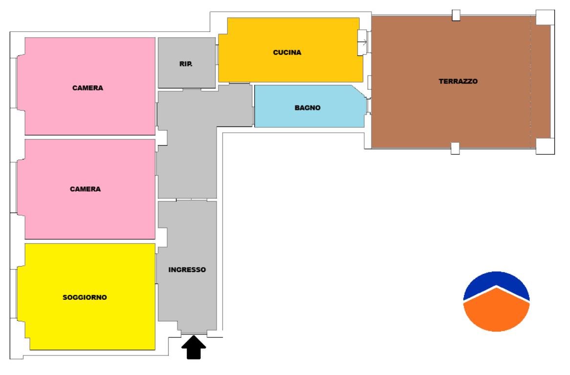 ingresso accogliente, ampio soggiorno, due spaziose camere matrimoniali, cucina abitabile, bagno, comodo e ampio ripostiglio.